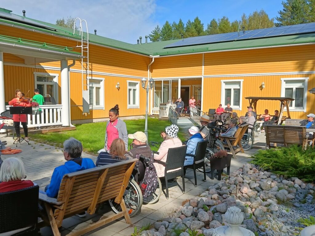 Yksilöllistä hoivaa ja aktiivista kaupunkiarkea Mainiokoti Tenhossa 26.6.2024 Täysin remontoituihin tiloihin vuonna 2018 avattu Mainiokoti Tenho tarjoaa ympärivuorokautista palveluasumista ja hoivaa ikääntyville ja muistisairaille ihmisille, yhdistäen kodikkuuden ja ammattitaitoisen hoivan ainutlaatuisella tavalla. Mainiokoti Tenho sijaitsee keskeisellä, vehreällä paikalla Helsingissä. Mainiokoti Tenho on enemmän kuin hoivakoti; se on yhteisö, jossa jokainen asukas tuntee olonsa turvalliseksi ja arvostetuksi. Ennen kaikkea Tenho on asukkaidensa koti, jossa jokaisella on oma huone, johon mahtuvat kaikki henkilökohtaiset tärkeät esineet ja muistot. Aktiivista elämää ja yhteisöllisyyttä Arki Mainiokoti Tenhossa rakentuu tuttujen ihmisten ja mielekkäiden toimintojen ympärille. Asukkaat saavat nauttia yhteisistä ruokahetkistä ja vapaa-ajan toiminnoista, kuten syntymäpäiväjuhlista ja tansseista. Myös ulkoilumahdollisuudet Tenhossa ovat erinomaiset, sillä hoivakoti sijaitsee Helsingin Keskuspuiston vieressä, ja asukkaat voivat nauttia myös kodin kattoterassin upeista maisemista. Sijainti pääkaupungin sydämessä mahdollistaa myös sen, että kodissa käy paljon esiintyjiä ilahduttamassa asukkaiden arkea. Yksikönjohtaja Olli Haapala kuvaileekin elämää Tenhossa aktiiviseksi ja monipuoliseksi kaupunkiarjeksi. Ammattitaitoinen ja läsnäoleva henkilökunta Mainiokoti Tenhossa työskentelee moniammatillinen henkilökunta ympäri vuorokauden, varmistaen, että jokainen asukas saa yksilöllistä ja laadukasta hoivaa. Tenhossa on paljon vakituista henkilökuntaa ja jokaiselle asukkaalle nimetään omahoitaja, joka tuntee asukkaan tarpeet ja toiveet. Tiimivastaava ja geronomi (YAMK) Tarja Kuntsi sekä lähihoitaja Rosemarie Villanueva pohtivat asukkaan kanssa elämänpuun keskeisiä teemoja. Asukkaaksi Tenhoon palvelusetelillä Mainiokoti Tenho tarjoaa ympärivuorokautista palveluasumista ja hoivaa ikäihmisille ja muistisairaille. Tenhoon voi tulla asumaan joko hyvinvointialueen vanhuspalveluiden kautta tai itsemaksavana asukkaana. Hyvinvointialueen kautta asumiseen voi saada maksusitoumuksen tai palvelusetelin. Palvelusetelin voi saada Helsingin kaupungilta, Länsi-Uudenmaan tai Vantaa-Keravan hyvinvointialueelta. Itsemaksava asukas on oikeutettu Kelan asumis- ja hoitotukeen sekä kotitalousvähennykseen. Ota yhteyttä Jos etsit itsellesi tai läheisellesi turvallista, kodikasta ja aktiivista elämää tarjoavaa hoivakotia, ota yhteyttä, niin sovitaan tutustumiskäynti. Kysy lisää:Olli Haapala, yksikönjohtajap. 044 765 0416olli.haapala@mainiokodit.fiVieraile Tenhon sivulla: https://mainiokodit.fi/hoivakodit/mainiokoti-tenho Seuraa arkeamme: Mainiokoti Tenho mainiokotitenho