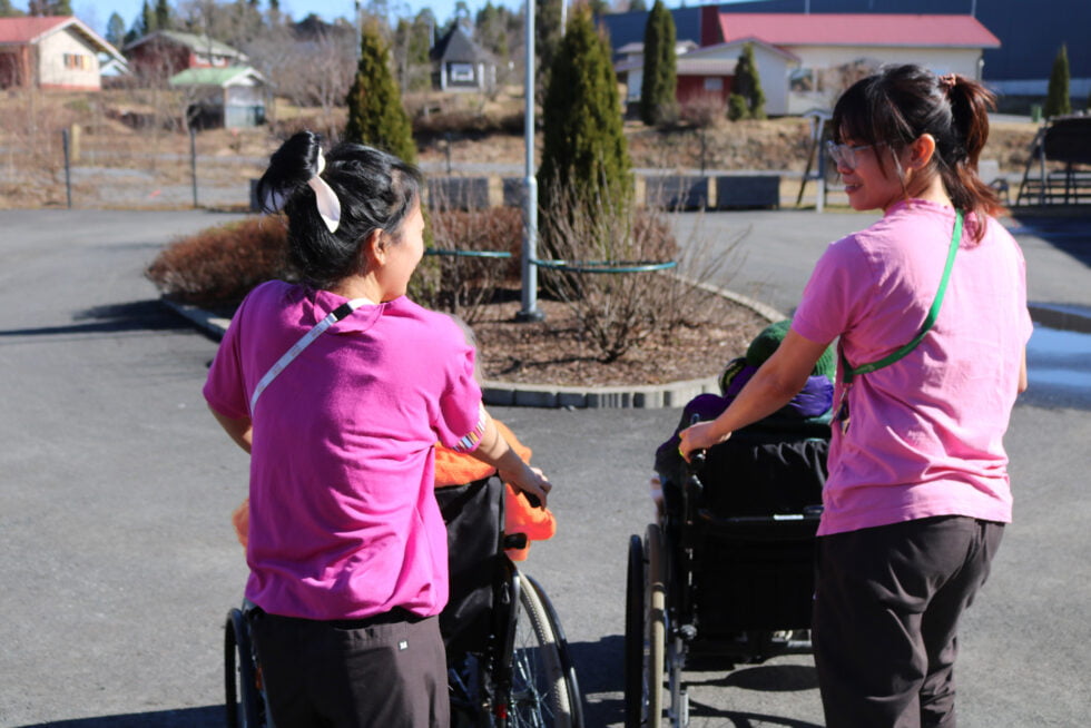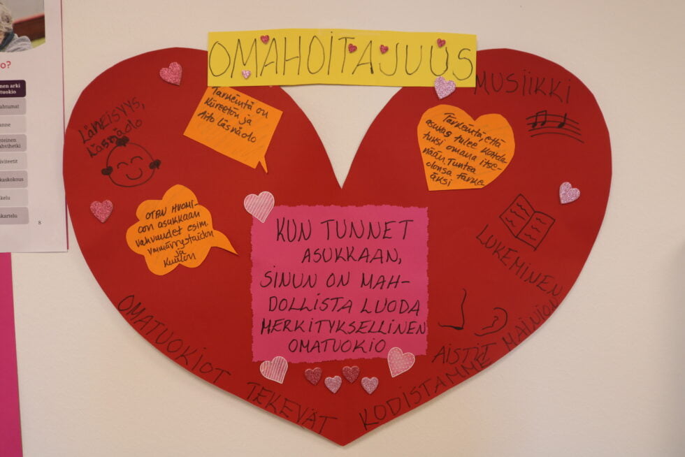 Mainiokoti Marttilanharju – ”Tavoitteemme on mielekäs ja hyvä arki” 16.5.2024 Toinen Marttilanharjun omista kokeista häärää parhaillaan keittiössä valmistelemassa lounasta. Kuulen vilkasta puheensorinaa. Yksi hoitajista lukee eräälle asukkaalle paikallislehteä ääneen. Asukkaat ovat kokoontuneet odottamaan pian alkavaa ruokailuhetkeä. ”Täällä itse tehty ruoka ja pyrkimys rauhallisiin ruokahetkiin ovat valttimme, josta olemme saaneet asukkailta kiitosta”, sanoo yksikönjohtaja Minna Kollin. Marttilanharjun kokki Sisko Saikalle myönnettiin Tähtisuorittaja-palkinto. Moniosaaja Saikalta hoituvat sekä laitoshuoltajan että kokin työt. Avarissa, esteettömissä ja nykyaikaisissa tiloissa ei ole laitosmaista – sisustus on kodikas. Yhteisissä tiloissa on mukavia nojatuoleja, sohvia ja pöytäryhmiä. Suurista ikkunoista voi seurata kadun vilinää. ”Täällä on elämää ympärillä. Meillä on myös oma piha, jossa on marjapensaita”, kertoo tiiminvetäjä Nina Halminen. ”Sekä asukkaat että henkilökunta osaavat arvostaa hyviä ja turvallisia ulkoilumahdollisuuksia”, hän tietää. Mainiokoti sijaitsee keskeisellä paikalla aivan Sastamalan keskustan tuntumassa lähellä kauppakeskuksia ja muita palveluita. Ulkoilu virkistää mieltä. Hoitajien ja asukkaiden turvallinen ulkoilu onnistuu oman pihan lisäksi lähiympäristössä. Lähihoitajaopiskelija Ailene Jacinto ja lähihoitaja Jonalisa Gabaldon asukkaiden kanssa ulkona. Mainiokoti Marttilanharjussa on 30 asiakaspaikkaa, ja se on tarkoitettu ympärivuorokautista hoivaa tarvitseville ikäihmisille. Kodin arki suunnitellaan asukkaiden toiveet ja tarpeet huomioiden ja omatoimisuutta tukien. Säännöllisestä päivärytmistä pidetään kiinni ja päiviin sisällytetään toiminnallisia hetkiä, sillä ne tukevat asukkaiden toimintakykyä. ”Jokaisella asukkaalla on omahoitaja, ja jokainen hoitaja saa myös olla vaikuttamassa siihen, minkälaisia merkityksellisiä hetkiä asukkaille järjestetään. Omahoitajuus on tämän vuoden kärkihanke kodissamme”, kiteyttää Kollin. ”Se, että omaan työhönsä voi vaikuttaa lisää sitä, että kokee työnsä mielekkääksi. Se on työntekijöillemme tärkeää”, hän lisää. ”Haluamme antaa asukkaille aikaa ja läsnäoloa – liian kiire ei saa olla. Kohtaaminen on tärkeää”, painottaa Halminen. ”Jokainen hoitaja voi tuoda omalla vahvuusalueellaan sisältöä ja tehdä ehdotuksia mitä aktiviteetteja asukkaille tarjotaan”, hän täsmentää. Asukkaille järjestetään lukuhetkiä, liikunnallisia tuokioita, erilaisten pelien pelaamista, musiikillisia tilaisuuksia – ja jopa tansseja. ”Hengellisyys on monille tärkeää, ja täällä järjestetään myös paikallisten kristillisten seurakuntien kanssa yhteistyössä hengellisiä tilaisuuksia. On jumalanpalveluksia, lauluryhmien esiintymistä ja diakonissan käyntejä”, luettelee Kollin. ”Täällä on vieraillut työntekijöiden ja läheisten koiria ja jopa yhden hoitajan terapiaponeja sisällä asti. Niistä on pidetty valtavasti”, hymyilee Halminen. ”Mielekäs ja hyvä arki on tavoitteemme. Panostamme siihen, että päivissä on sisältöä asukkaillemme.” Omahoitajuuteen sisältyviä tärkeitä asioita hoitajien näkemysten mukaisesti. Henkilökunnan suhteen tärkeää on tiimihenkisyyden vaaliminen. ”Sitä halutaan aina vahvistaa. On tärkeää tuntea kuuluvansa joukkoon”, Kollin selvittää. ”Kuuntelemme herkällä korvalla henkilökunnan näkemyksiä, ideoita ja toiveita. Jokaisella on omat vahvuutensa, ja meillä on mahdollisuus myös syventää osaamistaan – ja vaikka lisäkouluttautua työn ohella – esimerkiksi lääkevastuulliseksi.” Yhteydenpito omaisten suuntaan on myös tärkeää, samoin kuin läheisten vierailut. ”Haluamme, että Marttilanharjuun kokevat olevansa tervetulleita niin asukkaat, läheiset kuin työntekijätkin,” Kollin ja Halminen sanovat. Kaipaamme tiimiimme hoitajia, joilla on koulutus ja aitoa kiinnostusta ikäihmisten hoidon pariin. Mikäli kiinnostuit kodistamme, ole yhteydessä Minna Kolliniin. Yksikönjohtaja Minna Kollinp. 040 186 6857minna.kollin@mainiokodit.fi Alkuperäinen artikkeli on julkaistu Alueviestissä 24.4.2024. Kirjoittaja: Anne Heikkilä