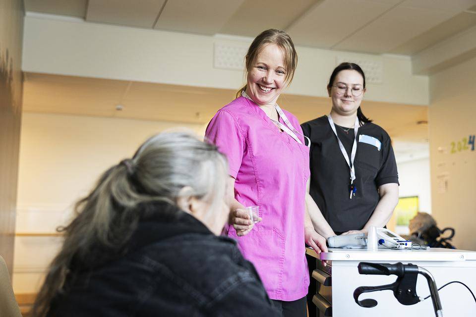 Mainiokoti Kruunussa tehdään arvokasta työtä iloisella asenteella 17.5.2024 Ympärivuorokautista hoivaa ja yhteisöllistä asumista tarjoavan Mainiokoti Kruunun käytäviltä kuuluu usein laulua, kertovat yksikön sairaanhoitaja Lilli Hytönen ja kokki Eevi Rahkonen. Hoivatyötä tehdään vahvasti omalla persoonalla ja omia vahvuuksia hyödyntämällä, kuitenkaan työn laadusta tinkimättä. Mutkattomat välit asukkaiden ja henkilökunnan välillä sekä työkavereiden kesken ovat Mainiokoti Kruunussa leimallisia piirteitä. – Mehän sen ilmapiirin itse luomme, kukapa muukaan, hymyilee Rahkonen. Hän on ollut talossa kokkina lähes alusta saakka, noin viiden vuoden ajan. Ruoassa, kuten kaikessa muussakin, pyritään kunnioittamaan asukkaiden toiveita. – He tykkäävät perinteisistä ruoista: karjalanpaistista, makaronilaatikosta ja perunarieskasta, Rahkonen mainitsee. Yksikössä tammikuussa 2024 aloittanut sairaanhoitaja Lilli Hytönen kertoo, että työyhteisöön oli helppo sujahtaa sisään heti ensimmäisestä päivästä lähtien. Alalle hän sanoo tulleensa, koska työ ihmisten parissa on oma juttu. – Olen kiinnostunut ihmisistä ja heidän elämäntarinoistaan, ja se on tässä ikäihmisten hoitotyössä tärkeää. Pyrimme myös antamaan aikaa asukkaille, että he saavat keskustella kanssamme siitä, millaista elämää he ovat viettäneet. – Tänne hakeuduin, koska minulla oli positiivinen mielikuva Mehiläisestä työnantajana. Vaikka talossa seurustellaan asukkaiden kanssa työn lomassa kaiken aikaa, Mainiokotien Omatuokiot ovat nimensä mukaisesti erityishetkiä, jotka on varattu pelkästään asukkaan ja omahoitajan väliseksi ajaksi. – Esimerkiksi erään asukkaan kanssa pysähdytään yleensä hetkeksi katsomaan vanhoja valokuvia ja muistelemaan menneitä, sairaanhoitaja Hytönen mainitsee. Mainiokodeilla toiminta on hyvin asukaslähtöistä, ja jokaisen asukkaan omat tarpeet tulevat aina tutuiksi talon työntekijöille. – Joku haluaa esimerkiksi nukkua aamulla pitempään kuin muut. Jotkut haluavat päiväunille, ja toiset eivät. Jokainen saa elää täällä omalla rytmillään, Hytönen sanoo. Asukaslähtöisyys on Mainiokoti Kruunun tärkeimpiä ohjenuoria. Kuvassa sairaanhoitaja Lilli Hytönen ja lähihoitaja Sini Keinänen. ”Helppo tulla töihin” Lämminhenkisen työympäristön lisäksi Hytönen ja Rahkonen mainitsevat työsuhde-eduista Edenred-kortin, jota voi käyttää työnantajan tukemana liikunta-, kulttuuri ja hyvinvointipalveluihin. Yksikönjohtaja Mirja Keinänen kertoo, että ympärivuorokautisen palvelusasumisen paikkoja Mainiokoti Kruunussa on 30, ja yhteisöllisen asumisen paikkoja 14. – Työntekijöitä meillä on keikkatyöläiset mukaan luettuina 20–30. Keinänen sanoo, että työvuoroja jaettaessa työntekijöiden toiveita kuunnellaan herkällä korvalla, ja työn viihtyvyyteen kiinnitetään muutenkin erityistä huomiota. – Mainiokodeille on helppo tulla työskentelemään, sillä meidän laadunhallintajärjestelmämme ja prosessimme ovat viimeisen päälle hiottuja. Tyytyväisyyskyselyillä arvioidaan säännöllisesti niin asukkaiden kuin henkilökunnankin viihtyvyyttä, ja viimeiset laatuindeksimme ovat olleet yli Mainiokotien keskiarvon. Keinäsen mukaan ominaista Mainiokoti Kruunulle on työyhteisön tiiviyden lisäksi sen moniammatillisuus. Esimerkiksi sosionomilla on iso rooli asukkaiden viihtyvyyden huomioimisessa. Mainiokoti Kruunussa vierailee usein esiintyjiä sekä päiväkodin lapsia. Yhteiseen ajanviettoon sisältyy vaikkapa leipomista ja askartelua. – Martat ovat käyneet täällä tanssittamassa asukkaitamme, ja silloin mekin tanssitimme heitä. Tämä on asukkaidemme koti, ja me olemme täällä heitä varten. Täällä saa näyttää kaikki taitonsa ja tunteensa, kokki Eevi Rahkonen tiivistää. Eevi Rahkonen on työskennellyt Mainiokoti Kruunussa lähes sen perustamisesta lähtien. Alkuperäinen artikkeli ja kuvat: Warkauden lehti 6.5.2024
