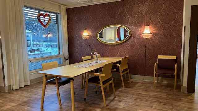 Kodissamme on avara ruokasali, kaksi ryhmäkotia (Ina ja Kalle), viihtyisät oleskelutilat kattokruunujen alla sekä sauna. Tilat on suunniteltu vanhusten ja liikuntaesteisten tarpeet huomioiden. Meillä on suuri turvallinen takapiha marjapensaineen sekä viihtyisä terassi asukkaidemme oleskelua ja virkistystä varten. Jokaisella asukkaalla on oma huone kylpyhuoneella. Huoneen saa sisustaa omilla kalusteilla mieleisekseen.