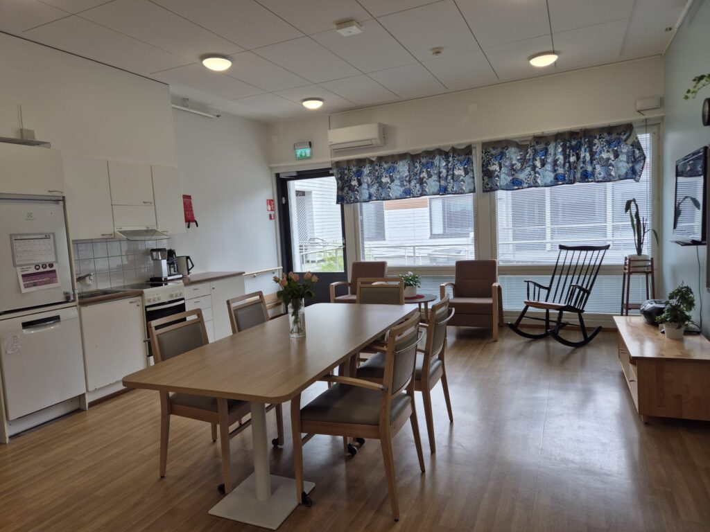 Mainiokoti Emilia ja Arvid Helsingiuksentie 54 B, 08700 Lohja Toimipaikkatyyppi: Yhteystiedot Yksikönjohtaja Katja Lintuniemi 050 592 2301 katja.lintuniemi@mainiokodit.fi Tiimivastaava Nimi Venla Nikander Puhelin 040 125 6342 Palvelujohtaja Pirjo Savolainen, Espoo ja Länsi-Uusimaa 040 673 2978 pirjo.a.savolainen@mainiokodit.fi Hoitajat Puhelin Sairaanhoitaja044 468 2092 Ryhmäkodit Puhelin Emilia ja Arvid050 595 0479 Puhelin Elisabeth ja August044 700 2680 Osoite Osoite Helsingiuksentie 54 B08700 Lohja Ruokalistat Viikko-ohjelmat: viikko 16 viikko 17 Kodin esittely Mainiokoti Emilia ja Arvid on 40-paikkainen ympärivuorokautisen hoivan yksikkö ikääntyneille Lohjan Virkkalassa. Tarjoamme asukkaillemme kodin, jossa heitä arvostetaan ja kunnioitetaan yksilöinä. Olemme kiinnostuneita asukkaidemme elämänhistoriasta ja hyödynnämme arvokasta tietoa suunnitellessamme asukkaan hoitoa ja huolenpitoa. Toimintamme perustuu rauhalliseen ja kunnioittavaan asukkaan kohtaamiseen. Korostamme hoitotyössä asukkaan yksilöllisten tarpeiden ja toiveiden huomioimista, jotta jokainen voi tuntea itsensä tärkeäksi ja arvostetuksi. Mainiokoti Emilia ja Arvid sijaitsee pienessä ja idyllisessä Virkkalassa, Lohjalla. Yksikkömme on pieni ja kodikas ja kaikki meillä asuvat kuuluvat samaan yhteisöön, riippumatta siitä missä ryhmäkodissa he asuvat. Työyhteisössämme vallitsee lämmin ja avoin ilmapiiri, jossa joukkuehenkisyys, keskustelevuus ja vuorovaikutus sekä positiivisuus ovat keskiössä. Meille on tärkeää, että työyhteisömme tukee toisiaan ja toimii yhteistyössä asukkaidemme parhaaksi. Panostamme monipuolisiin aktiviteetteihin. Taideaineet, kuten musiikki ja kädentaidot, ovat keskiössä. Taide luo asukkaillemme mahdollisuuksia itseilmaisuun ja mielekkääseen tekemiseen. Voitkin nähdä asukkaiden taideteoksia ympäri kotimme seiniä tai kuulla musiikkia eri muodoissaan kotimme käytävillä. Läheiset ovat tärkeä osa yhteisöämme ja aktiivisesti mukana asukkaiden arjessa. Yhteistyö läheisten kanssa on keskeinen osa hoivan laatua ja asukkaiden hyvinvointia. Osaava, koulutettu ja välittävä henkilöstö Monipuolista toimintaa Ympärivuorokautista hoivaa Esteettömät tilat Kaunis luonto ja ympäristö Hyvät kulkuyhteydet Palvelut ja toiminta Näin asut meillä Kodit ja yhteistilat Vapaa-aika ja järjestetty toiminta Tulo-ohjeet Kodin ympäristö Meille asukkaaksi Palautteet asukkailta ja läheisiltä Näin asut meillä Mainiokoti Emilia ja Arvidissa asukkaita asuu neljässä eri ryhmäkodissa; Emiliassa, Arvidissa, Elisabethissa ja Augustissa. Jokaisella asukkaalla on oma huone. Kokoonnumme päivittäin yhteisiin tiloihin yhteisten aktiviteettien ja ruokailujen pariin. Ammattitaitoinen henkilökuntamme on asukkaidemme arjessa läsnä ympäri vuorokauden. Meille jokainen asukas on ainutlaatuinen. Näin asut meillä Näin asut meillä Mainiokoti Emilia ja Arvidissa asukkaita asuu neljässä eri ryhmäkodissa; Emiliassa, Arvidissa, Elisabethissa ja Augustissa. Jokaisella asukkaalla on oma huone. Kokoonnumme päivittäin yhteisiin tiloihin yhteisten aktiviteettien ja ruokailujen pariin. Ammattitaitoinen henkilökuntamme on asukkaidemme arjessa läsnä ympäri vuorokauden. Meille jokainen asukas on ainutlaatuinen. Kodit ja yhteistilat Meillä on kauniit ja valoisat yhteiset tilat. Jokainen asukas asuu omassa huoneessa, joka on varustettu omalla wc:llä ja suihkulla. Huoneen saa sisustaa omanlaisekseen. Yhteisiä tiloja ovat muun muassa ruokasali ja saunatilat. Asukkaamme voivat nauttia kesäisin viihtyisästä vehreästä ja kukkivasta pihastamme ja ulkoilla talvisinkin turvallisesti omalla pihalla. Kodit ja yhteistilat Kodit ja yhteistilat Meillä on kauniit ja valoisat yhteiset tilat. Jokainen asukas asuu omassa huoneessa, joka on varustettu omalla wc:llä ja suihkulla. Huoneen saa sisustaa omanlaisekseen. Yhteisiä tiloja ovat muun muassa ruokasali ja saunatilat. Asukkaamme voivat nauttia kesäisin viihtyisästä vehreästä ja kukkivasta pihastamme ja ulkoilla talvisinkin turvallisesti omalla pihalla. Vapaa-aika ja järjestetty toiminta Kuuntelemme musiikkia, askartelemme, laulamme, ulkoilemme, keskustelemme uutisista, leivomme, jumppaamme ja katselemme elokuvia. Kädentaidot näkyvät eri muodoissaan muun muassa askarteluina ja maalauksina kotimme käytävillä. Erilaiset musiikkiesiintyjät ja esimerkiksi eläinvierailijat käyvät viihdyttämässä asukkaitamme. Kodissamme käy myös jalkahoitaja ja kampaaja. Vapaa-aika ja järjestetty toiminta Vapaa-aika ja järjestetty toiminta Kuuntelemme musiikkia, askartelemme, laulamme, ulkoilemme, keskustelemme uutisista, leivomme, jumppaamme ja katselemme elokuvia. Kädentaidot näkyvät eri muodoissaan muun muassa askarteluina ja maalauksina kotimme käytävillä. Erilaiset musiikkiesiintyjät ja esimerkiksi eläinvierailijat käyvät viihdyttämässä asukkaitamme. Kodissamme käy myös jalkahoitaja ja kampaaja. Tulo-ohjeet Kodillemme on matkaa n. 8 km Lohjan keskustasta ja linja-autopysäkki on n. 300 m päässä. Tulo-ohjeet Tulo-ohjeet Kodillemme on matkaa n. 8 km Lohjan keskustasta ja linja-autopysäkki on n. 300 m päässä. Kodin ympäristö Emiliassa ja Arvidissa on aidattu piha-alue ja kolme katettua terassia sisäpihan puolella. Vieressämme on myös pieni lampi, jonka ympäri teemme kävelylenkkejä. Kotimme rajoittuu viehättävään koivikkoon, jonka avulla voi seurata vuodenaikojen vaihtumista kuin elävää taulua. Kodin ympäristö Kodin ympäristö Emiliassa ja Arvidissa on aidattu piha-alue ja kolme katettua terassia sisäpihan puolella. Vieressämme on myös pieni lampi, jonka ympäri teemme kävelylenkkejä. Kotimme rajoittuu viehättävään koivikkoon, jonka avulla voi seurata vuodenaikojen vaihtumista kuin elävää taulua. Meille asukkaaksi Meille voit tulla asukkaaksi eri hyvinvointialueilta sopimalla asiasta oman alueen asiakasohjaajan kanssa tai vaihtoehtoisesti itse maksavana asiakkaana. Asukas o