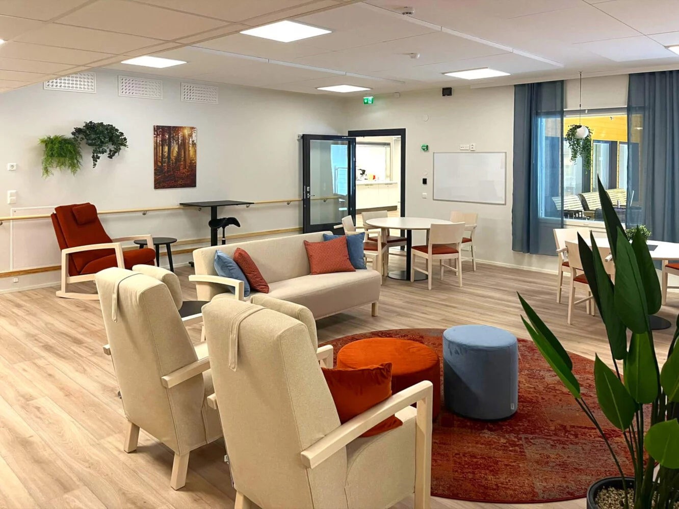 Päivät viihdytään yhteisissä tiloissa, joissa on tarjolla seuraa ja tapahtumia jokaisen oman kiinnostuksen ja jaksamisen mukaan. Arki muodostuu siis sopivassa suhteessa omasta rauhasta ja yhdessä tekemisestä.