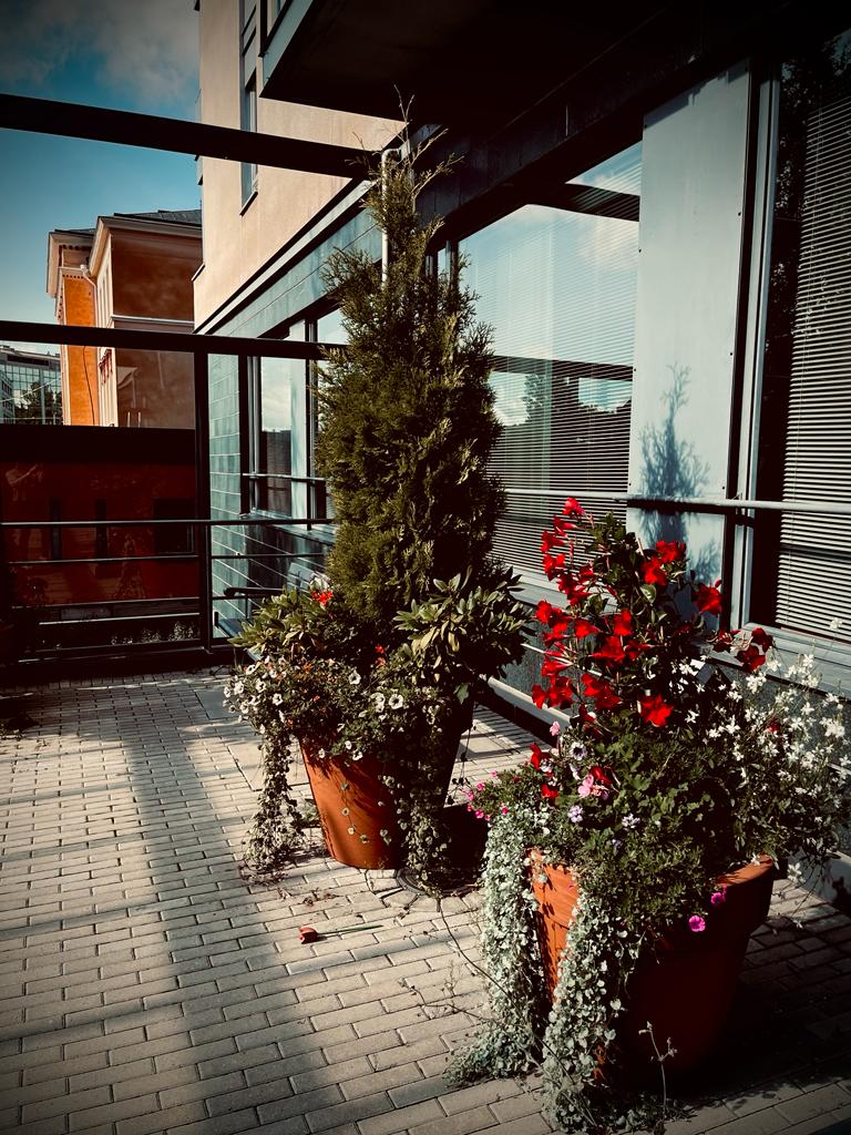 Kodillamme on viihtyisä ja aidattu patio, jossa voi ulkoilla turvallisesti. Kodiltamme on myös hyvät kulkuyhteyden eripuolille kaupunkia ja kattavat palvelut ovat lähietäisyydellä.