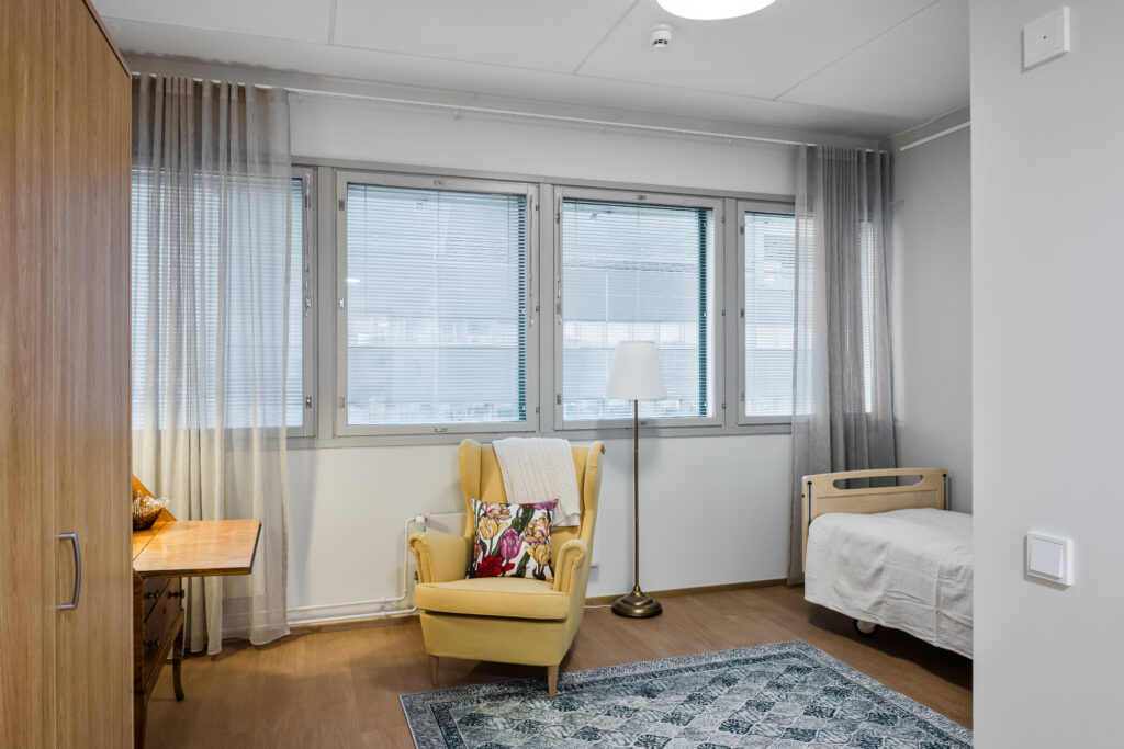 Mainiokoti Pacius Paciuksenkatu 27, 00270 Helsinki Toimipaikkatyyppi: Yhteystiedot Yksikönjohtaja Elina Karvonen 040 809 3639 elina.karvonen@mainiokodit.fi Tiimivastaava Nimi Heidi Lanki Puhelin 040 673 0854 Email heidi.lanki@mehilainen.fi Palvelujohtaja Marina Räihä, Helsinki ja Vantaa-Kerava 040 667 1720 marina.raiha@mainiokodit.fi Sairaanhoitaja Nimi Marie Hammarstjärna Puhelin 040 772 3978 Email marie.hammarstjarna@mehilainen.fi Ryhmäkodit Puhelin Sävel (2. krs)040 704 2895 Puhelin Sointu (4. krs)040 619 4376 Puhelin Melodia (5. krs)040 543 7050 Osoite Osoite Paciuksenkatu 2700270 Helsinki Kodin esittely Mainiokoti Pacius tarjoaa ympärivuorokautista hoivaa ja viihtyisän kodin 63 ikääntyneelle asukkaalle. Asukkaat voivat nauttia kodin yläkerrassa laajasta monitoimitilasta, kattoterassista sekä saunasta ja pesutiloista. Asuinhuoneet ovat avarat ja valoisat. Mainiokoti Pacius tarjoaa puitteet moderniin hoiva-asumiseen, puistomaisen lähiympäristön ja esteettömän näköalan viereiselle Huopalahdelle. Mainiokotiin on helppo kulku bussilla, raitiovaunulla ja autolla, mikä helpottaa esimerkiksi läheisten vierailua kodissa. Voit varata yksityisen tutustumiskäynnin ottamalla yhteyttä yksikönjohtajaan Nimi Elina Karvonen Puhelin 040 809 3639 Osaava, koulutettu ja välittävä henkilöstö Monipuolista toimintaa Ympärivuorokautista hoivaa Esteettömät tilat Kaunis luonto ja ympäristö Hyvät kulkuyhteydet Palvelut ja toiminta Kodit ja yhteistilat Vapaa-aika ja järjestetty toiminta Kodin ympäristö Meille asukkaaksi Kodit ja yhteistilat Mainiokoti Paciuksen valoisat ja modernit asukashuoneet sijaitsevat yhteisten oleskelutilojen ja keittiön ympärillä. Jokaisessa huoneessa on iso ikkuna joko Huopalahdelle tai kaupunkiin päin. Omaan huoneeseen voi tuoda myös omia tuttuja kalusteita, tauluja ja valokuvia. Tutuilla esineillä tilasta tulee omannäköinen koti. Asukkaiden yhteisessä käytössä on ylimmässä kerroksessa sijaitseva harrastekäyttöön suunniteltu monitoimitila. Tilan yhteydessä on kattoterassi, josta avautuu upeat näkymät läheiselle Huopalahdelle. Osittain katetulla ja lasitetulla terassilla on viihtyisiä oleskelutiloja sekä kesällä mahdollisuus grillaamiseen. Kodin energiatehokkuutta parannetaan omalla aurinkosähköjärjestelmällä, ja kaikissa tiloissa hyödynnetään energiatehokkaita LED-valaisimia. Rakennuksen tehokas lämmön talteenotto ja keskitetty rakennusautomaatiojärjestelmä optimoivat jatkuvasti energiankulutusta. Mainiokoti Paciuksen sydän on oma valmistuskeittiö, jossa kokkimme valmistaa maukasta kotiruokaa asukkaille. Kokki toteuttaa mielellään säännöllisissä asukaskokouksissa kerättyjä ruokatoiveita. Kodit ja yhteistilat Kodit ja yhteistilat Mainiokoti Paciuksen valoisat ja modernit asukashuoneet sijaitsevat yhteisten oleskelutilojen ja keittiön ympärillä. Jokaisessa huoneessa on iso ikkuna joko Huopalahdelle tai kaupunkiin päin. Omaan huoneeseen voi tuoda myös omia tuttuja kalusteita, tauluja ja valokuvia. Tutuilla esineillä tilasta tulee omannäköinen koti. Asukkaiden yhteisessä käytössä on ylimmässä kerroksessa sijaitseva harrastekäyttöön suunniteltu monitoimitila. Tilan yhteydessä on kattoterassi, josta avautuu upeat näkymät läheiselle Huopalahdelle. Osittain katetulla ja lasitetulla terassilla on viihtyisiä oleskelutiloja sekä kesällä mahdollisuus grillaamiseen. Kodin energiatehokkuutta parannetaan omalla aurinkosähköjärjestelmällä, ja kaikissa tiloissa hyödynnetään energiatehokkaita LED-valaisimia. Rakennuksen tehokas lämmön talteenotto ja keskitetty rakennusautomaatiojärjestelmä optimoivat jatkuvasti energiankulutusta. Mainiokoti Paciuksen sydän on oma valmistuskeittiö, jossa kokkimme valmistaa maukasta kotiruokaa asukkaille. Kokki toteuttaa mielellään säännöllisissä asukaskokouksissa kerättyjä ruokatoiveita. Vapaa-aika ja järjestetty toiminta Mainiokoti Paciuksessa vietetään aktiivista arkea sekä tietenkin juhlia joulusta juhannukseen ja itsenäisyyspäivästä vappuun. Teemme yhteisiä retkiä esimerkiksi museoihin ja näyttelyihin, ja kodissamme vierailee esiintyjiä ja rapsuteltavia lemmikkejä. Jokainen asukas voi osallistua yhteiseen toimintaan omien mieltymysten ja toimintakykynsä mukaan. Yhdessä tekeminen tuo iloa ja virkeyttä päiviin, ja myös läheiset ovat tervetulleita suunnittelemaan toimintaa. Vapaa-aika ja järjestetty toiminta Vapaa-aika ja järjestetty toiminta Mainiokoti Paciuksessa vietetään aktiivista arkea sekä tietenkin juhlia joulusta juhannukseen ja itsenäisyyspäivästä vappuun. Teemme yhteisiä retkiä esimerkiksi museoihin ja näyttelyihin, ja kodissamme vierailee esiintyjiä ja rapsuteltavia lemmikkejä. Jokainen asukas voi osallistua yhteiseen toimintaan omien mieltymysten ja toimintakykynsä mukaan. Yhdessä tekeminen tuo iloa ja virkeyttä päiviin, ja myös läheiset ovat tervetulleita suunnittelemaan toimintaa. Kodin ympäristö Mainiokoti Pacius sijaitsee Helsingin sydämessä lähellä palveluita, Huopalahden merellisissä maisemissa. Läheisten on helppo saapua kotiimme julkisilla kulkuneuvoilla. Kodin ympäristö Kodin ympäristö Mainiokoti Pacius sijaitsee Helsingin sydämessä lähellä palveluita, Huopalahden merellisissä maisemissa. Läheisten on helppo saapua kotiimme julkisilla kulkuneuvoilla. Meille asukkaaksi Mainiokoti Pacius valmistuu maaliskuussa 2026. Mainiokotiin muuttamisesta ja vapaista asukaspaikoista saat lisätietoa Mainiokotien palvelunumerosta p. 020 581 300 Lue artikkelista, miten vanha toimistorakennus muuntuu moderniksi hoivakodiksi: https://mainiokodit.fi/ajankohtaista/toimistorakennuksesta-ikaantyneiden-kodiksi-helsingin-paciuksenkadulle-rakentuu-uutta Meille asukkaaksi Meille asukkaaksi Mainiokoti Pacius valmistuu maaliskuussa 2026. Mainiokotiin muuttamisesta ja vapaista asukaspaikoista saat lisätietoa Mainiokotien palvelunumerosta p. 020 581 300 Lue artikkelista, miten vanha toimisto