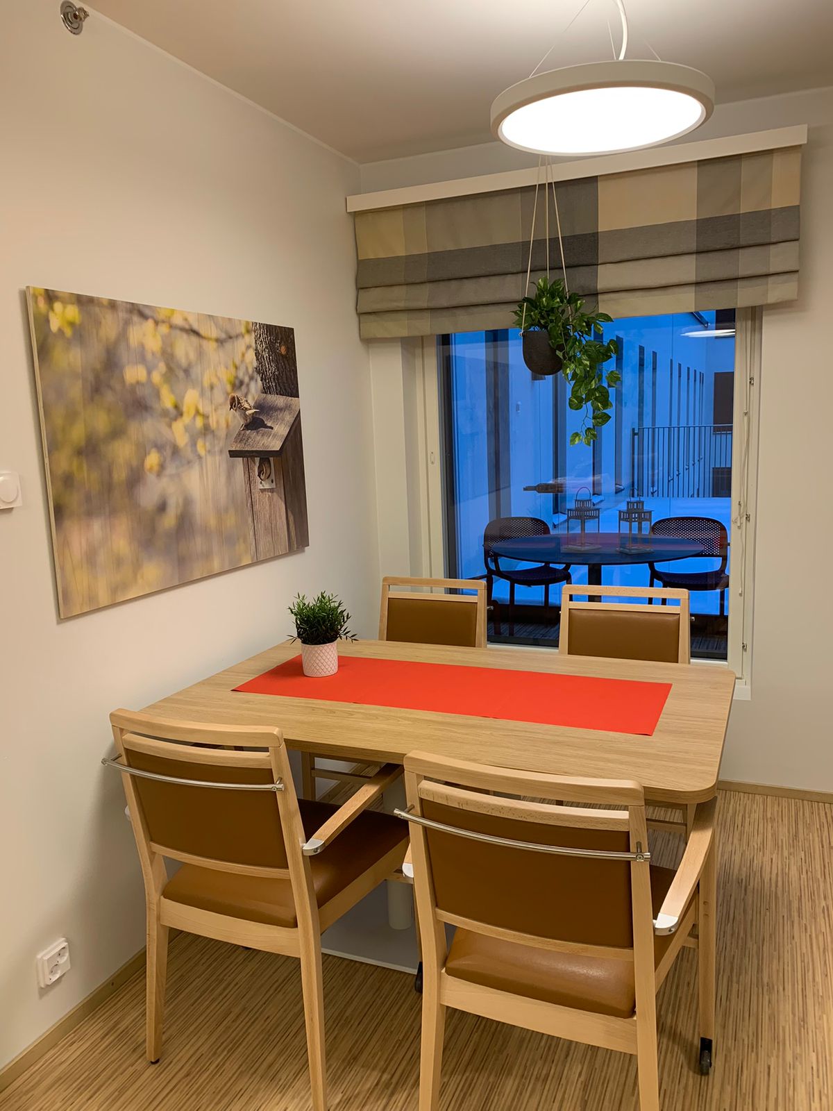 Mainiokoti Ruusu Lukutie 1 D, 40270 Palokka Toimipaikkatyyppi: Meillä on vapaita asukaspaikkoja Voit kysellä asukaspaikkoja ottamalla yhteyttä yksikönjohtajaan. Irma Manninen 040 189 7551 Yhteystiedot Yksikönjohtaja Irma Manninen 040 189 7551 irma.manninen@mainiokodit.fi Palvelupäällikkö Harri Vainio, Keski- ja Itä-Suomi 050 599 0861 harri.vainio@mainiokodit.fi Puhelin Onni040 530 5371 Puhelin Ilo040 530 5779 Puhelin Sairaanhoitaja040 530 8074 Osoite Osoite Lukutie 1 D40270 Palokka Kodin esittely Tarjoamme kodissamme yksilöllistä hoivaa ja asumispalveluita ikääntyville asukkaille. Tehtävämme on turvata ja taata asukkaillemme mahdollisimman onnellinen, laadukas ja toiminnallinen elämä kodissamme. Osaava, koulutettu ja välittävä henkilökunta Ympärivuorokautista hoivaa Esteettömyys Yhteisöllisyys Sauna Palvelut ja toiminta Toiminta-ajatus Kodit ja yhteistilat Kodin ympäristö Meille asukkaaksi Palautteet asukkailta ja läheisiltä Toiminta-ajatus Toiminta-ajatuksemme mukaisesti toimintamme ytimessä on laadukas hoito ja hoiva, yhteisöllisyys sekä elämänmakuinen arki, jossa kiinnitämme huomiota myös juhlapyhiin ja yhteisiin hetkiin. Kunnioitamme jokaisen asukkaamme mielipiteitä ja kannustamme itsenäisiin valintoihin ja päätöksiin, mikä ilmenee avoimena ja arvostavana kohtaamisena, sekä keskustelukulttuurina. Yhteisöllisyys on vahvuutemme ja luonto, sekä musiikki ovat näkyvästi läsnä päivittäisessä toiminnassamme, tuoden iloa ja virkistystä asukkaidemme elämään. Jokainen päivä Mainiokodissa on mahdollisuus hyvään elämään, jossa asukas tuntee tulleensa kuulluksi, arvostetuksi ja elävänsä ympäristössä, joka kunnioittaa hänen yksilöllisyyttään. Viihtyisä, tammikuussa 2022 avattu Mainiokoti Ruusu on esteetön palvelukotimme, jossa asukkaat asuvat omissa huoneissaan. Yhteisöllisyys toteutuu arjen toiminnassa. Asukkaat tapaavat toisiaan yhteisillä ruokailuhetkillä ja kodin toiminnoissa. Järjestämme päivittäin asukaslähtöistä, aktivoivaa, virkistävää ja kuntouttavaa arjen toimintaa. Toiminta ajatus Toiminta-ajatus Toiminta-ajatuksemme mukaisesti toimintamme ytimessä on laadukas hoito ja hoiva, yhteisöllisyys sekä elämänmakuinen arki, jossa kiinnitämme huomiota myös juhlapyhiin ja yhteisiin hetkiin. Kunnioitamme jokaisen asukkaamme mielipiteitä ja kannustamme itsenäisiin valintoihin ja päätöksiin, mikä ilmenee avoimena ja arvostavana kohtaamisena, sekä keskustelukulttuurina. Yhteisöllisyys on vahvuutemme ja luonto, sekä musiikki ovat näkyvästi läsnä päivittäisessä toiminnassamme, tuoden iloa ja virkistystä asukkaidemme elämään. Jokainen päivä Mainiokodissa on mahdollisuus hyvään elämään, jossa asukas tuntee tulleensa kuulluksi, arvostetuksi ja elävänsä ympäristössä, joka kunnioittaa hänen yksilöllisyyttään. Viihtyisä, tammikuussa 2022 avattu Mainiokoti Ruusu on esteetön palvelukotimme, jossa asukkaat asuvat omissa huoneissaan. Yhteisöllisyys toteutuu arjen toiminnassa. Asukkaat tapaavat toisiaan yhteisillä ruokailuhetkillä ja kodin toiminnoissa. Järjestämme päivittäin asukaslähtöistä, aktivoivaa, virkistävää ja kuntouttavaa arjen toimintaa. Kodit ja yhteistilat Mainiokoti Ruusussa on 29 asukaspaikkaa. Kotimme yhteiset tilat ovat avarat ja kaikki asunnot ovat reilun kokoisia. Mainiokoti Ruusun tilojen suunnittelussa on panostettu siihen, että asukas voi kokea oman arkensa turvalliseksi ja mielekkääksi silloin, kun kotona ei enää pärjääkään. Asukkaiden omat yksilölliset tarpeet huomioidaan ja heille taataan oman näköinen elämä. Mainiokoti Ruusu sopii hyvin myös yhteisöllisyyttä arvostavalle asukkaalle, sillä yhteisiä tiloja ja aktiviteetteja on tarjolla. Palvelukodin yhteiset tilat ovat avarat ja kaikki asunnotkin mukavan reilunkokoisia. Mainiokoti Ruusussa on kaksi ryhmäkotia, joissa henkilökuntamme on paikalla ympäri vuorokauden. Kaikissa huoneissa on oma kylpyhuone. Kodissamme on avara yhteinen ruokailutila, harrastetilat ja saunaosasto. Jokaisessa ryhmäkodissa on oma olohuone. Kodit ja yhteistilat Kodit ja yhteistilat Mainiokoti Ruusussa on 29 asukaspaikkaa. Kotimme yhteiset tilat ovat avarat ja kaikki asunnot ovat reilun kokoisia. Mainiokoti Ruusun tilojen suunnittelussa on panostettu siihen, että asukas voi kokea oman arkensa turvalliseksi ja mielekkääksi silloin, kun kotona ei enää pärjääkään. Asukkaiden omat yksilölliset tarpeet huomioidaan ja heille taataan oman näköinen elämä. Mainiokoti Ruusu sopii hyvin myös yhteisöllisyyttä arvostavalle asukkaalle, sillä yhteisiä tiloja ja aktiviteetteja on tarjolla. Palvelukodin yhteiset tilat ovat avarat ja kaikki asunnotkin mukavan reilunkokoisia. Mainiokoti Ruusussa on kaksi ryhmäkotia, joissa henkilökuntamme on paikalla ympäri vuorokauden. Kaikissa huoneissa on oma kylpyhuone. Kodissamme on avara yhteinen ruokailutila, harrastetilat ja saunaosasto. Jokaisessa ryhmäkodissa on oma olohuone. Kodin ympäristö Mainiokoti Ruusu sijaitsee 5 km Jyväskylän keskustasta Palokan alueella, osoitteessa Lukutie 1, 40270 Palokka. Saneerattu kohde on valmistunut vuoden 2022 alussa. Palveluista kauppa ja kirjasto sijaitsevat välittömässä läheisyydessä ja parin kilometrin päästä, Palokan kauppakeskuksesta löytyy apteekki ja erikoisliikkeitä. Palokassa luonto on läsnä joka puolella. Hyvät ulkoilumahdollisuudet ja Palokkajärven rantamaisemat ovat lähellä, samoin Touruvuoren ulkoilualue, jossa on valaistuja ulkoilureittejä ja upea luontopolku, joka esittelee alueen monimuotoista metsä-, kallio- ja suoluontoa. Kodin ympäristö Kodin ympäristö Mainiokoti Ruusu sijaitsee 5 km Jyväskylän keskustasta Palokan alueella, osoitteessa Lukutie 1, 40270 Palokka. Saneerattu kohde on valmistunut vuoden 2022 alussa. Palveluista kauppa ja kirjasto sijaitsevat välittömässä läheisyydessä ja parin kilometrin päästä, Palokan kauppakeskuksesta löytyy apteekki ja erikoisli